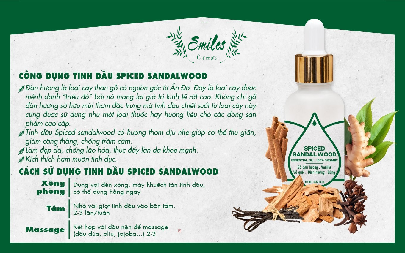 CÔNG DỤNG TINH DẦU SPICED SANDALWOOD